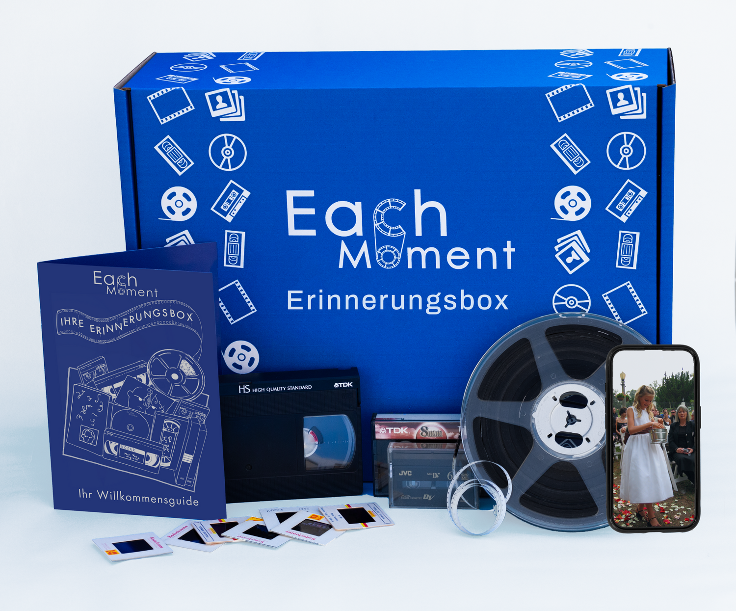 Unsere Erinneringsbox ist eine speziell entwickelte, robuste Box, die wir Ihnen völlig kostenfrei zur Verfügung stellen, um Ihre wertvollen Medien sicher zu verpacken und zur Digitalisierung an uns zu senden. Sie ist Ihr Ausgangspunkt, um Ihre geschätzten Erinnerungen zu bewahren! Die Erinneringsbox ist darauf ausgelegt,:
